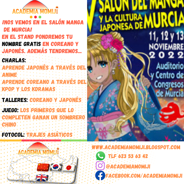 El próximo fin de semana 11, 12 y 13 de Noviembre nos vemos en el Salón Manga de Murcia 2022